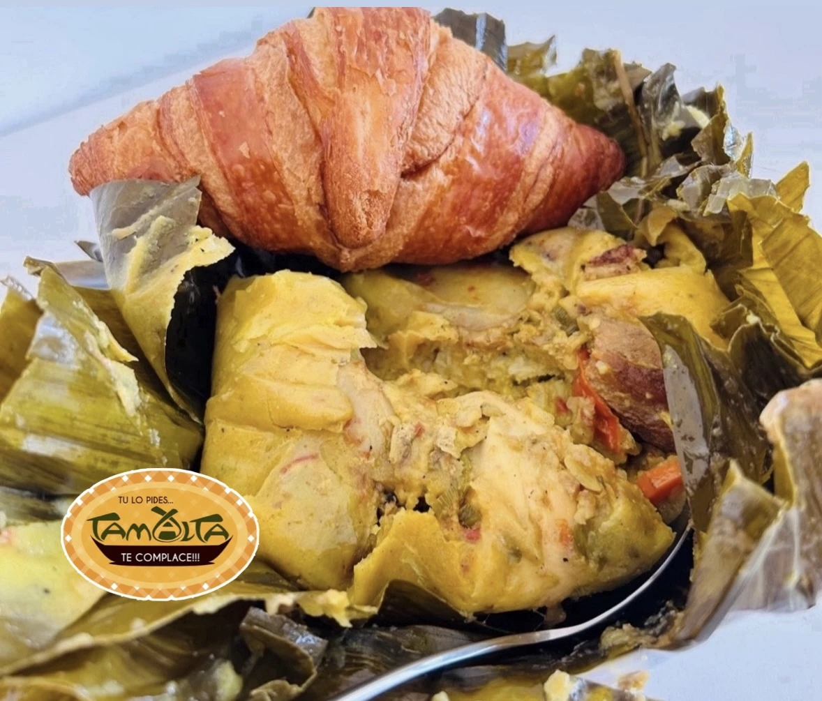 Delicioso Tamal acompañado con pan, ven y disfruta del verdadero sabor Colombiano
