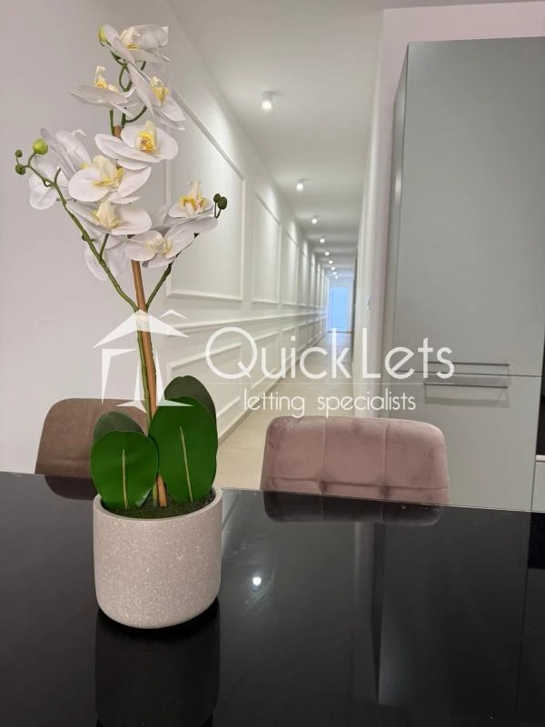 The property features a spacious open-plan living and dining area with a fully equipped contemporary kitchen, ideal for couples, families, or shared accommodation.